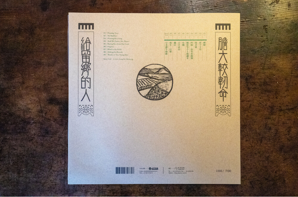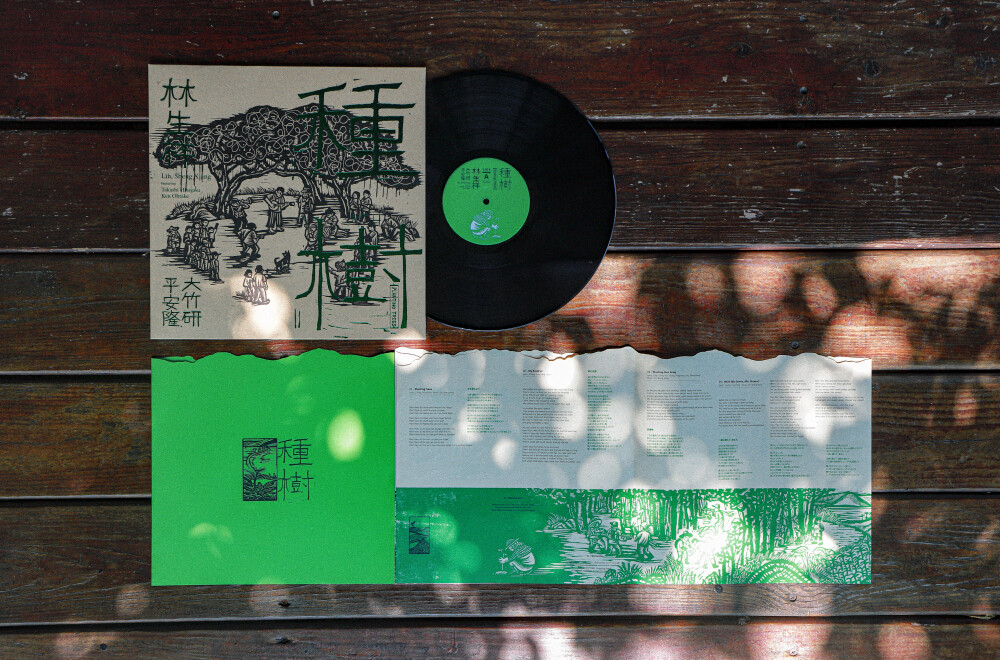 2024年再版的《種樹》專輯,在音樂部分保留當年的錄音室版本,而在裝幀上做了全新設計,木刻創作者王亮重新閱讀、聆聽2006年的詞句與樂音,加以對於美濃環境運動歷程的理解,最終濃縮在五塊木刻版上,形構出總尺寸20*300公分的版畫,這是在十八年後,對於美濃故事的重新詮釋,引入兒童的視角與創造童趣的人物形象,「這也是我獻給美濃的情歌」,王亮如是道。版畫作品再經由設計師羅文岑的巧思,藉著黑膠唱片的大開本,更完整且具體的呈現了《種樹》的農村意識與世界觀。